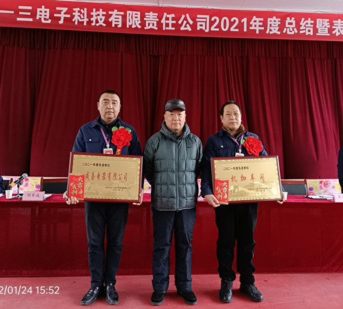 會(huì )議在莊嚴的國歌聲中開(kāi)幕,常務(wù)副總經(jīng)理胡軍成同志做了2021年度公司工作報告,副總經(jīng)理頡海浪同志宣讀了2021年度公司表彰決定,參會(huì )領(lǐng)導分別為受表彰的先進(jìn)集體和個(gè)人頒獎。同時(shí),東煜集團常務(wù)副總裁、公司黨委書(shū)記王輝同志,東煜集團領(lǐng)導王和平同志圍繞董事長(cháng)三次會(huì )議精神和兩步走的總體戰略部署做了重要講話(huà)。