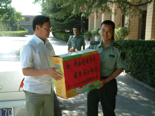 7410027月28日,公司黨政工團帶上節日慰問(wèn)品深入68202部隊通信營(yíng)、通信科及天水陸軍預備役旅進(jìn)行了節日慰問(wèn)。 作為一個(gè)原軍隊企業(yè),對部隊懷有一份格外特殊的感情,多年來(lái),公司堅持每年通過(guò)會(huì )議座談、文藝聯(lián)歡、籃球比賽、幫助部隊檢修通信設備、進(jìn)行業(yè)務(wù)技術(shù)培訓等不同形式開(kāi)展軍民雙擁共建活動(dòng)。這些活動(dòng)不管是從形式內容上,還是在效果作用上,都達到了民擁軍,軍愛(ài)民,軍民共建和諧社會(huì ),共同促進(jìn)發(fā)展的目的。這次公司帶著(zhù)文體及文化生活等用品到部隊進(jìn)行節日慰問(wèn),不僅表達了公司對部隊官兵節日慰問(wèn)的真摯感情,還就如何進(jìn)一步推進(jìn)雙擁共建活動(dòng)的形式和領(lǐng)域進(jìn)行了暢談和交流。
