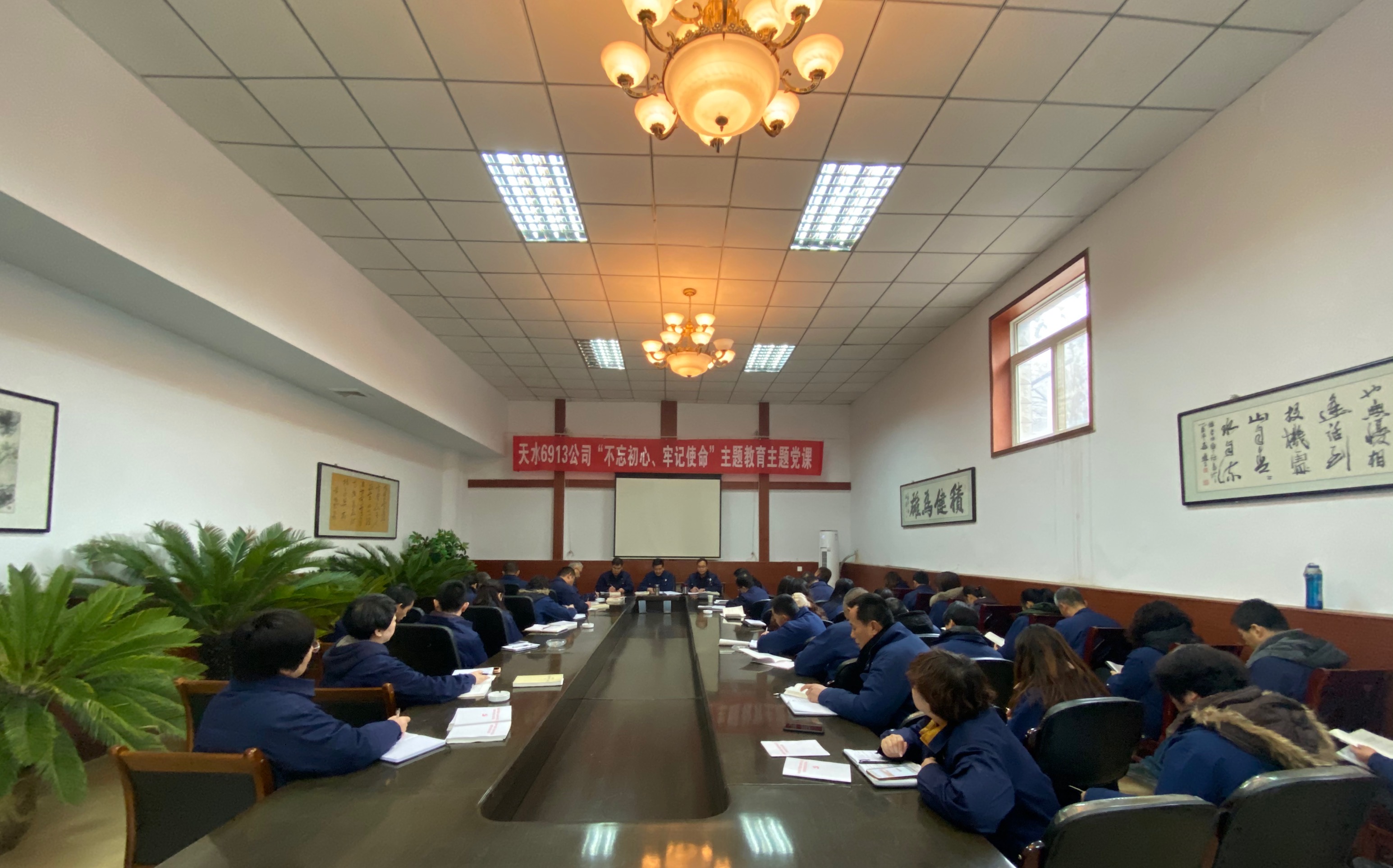 741002按照省國防工委和6913公司黨委“不忘初心、牢記使命”主題教育安排部署,為了使廣大黨員干部職工進(jìn)一步明確主題教育的目的及意義,激勵黨員干部職工以時(shí)不我待之工作干勁助推各項工作向前發(fā)展,11月26日,6913公司黨委書(shū)記王輝同志為全體黨員上黨課。