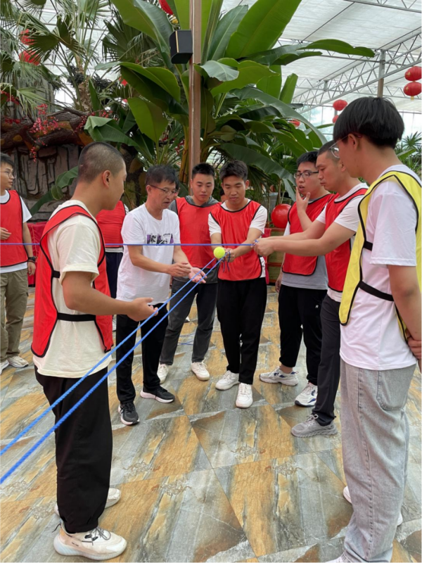 座談會(huì )結束后開(kāi)展了團隊拓展訓練活動(dòng),設置了“同心鼓擊鼓、巨人腳步、一圈到底、縱橫天下軌道傳球、趣味背夾球、不倒森林”等活動(dòng)。通過(guò)分組合作,一起取隊名、選隊長(cháng)、喊口號,相互協(xié)作、相互鼓勵、相互比拼,增強了新員工彼此之間的了解和友誼,為他們以后在工作中能更好地協(xié)同工作打下了堅實(shí)的基礎,讓新員工體會(huì )到了個(gè)人和團隊的關(guān)系,增強了大家的責任意識和擔當意識,提升了新員工的凝聚力與戰斗力,鍛煉了新員工的溝通能力和組織能力。