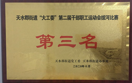7410022020年10月29日至30日,天水郡街道辦事處“大工委”第二屆干部職工運動(dòng)會(huì )在天水師范學(xué)院舉行。天水郡街道辦事處轄區18個(gè)單位組隊參加了各項賽事。運動(dòng)會(huì )設乒乓球團體、羽毛球團體、籃球和拔河四個(gè)項目。6913工會(huì )在保證企業(yè)生產(chǎn)經(jīng)營(yíng)正常進(jìn)行的情況下精心組織安排參加了全部項目的比賽,參賽隊員在比賽中充分發(fā)揚“友誼第一,比賽第二”的體育精神,特別是在拔河比賽中隊員們能夠步調一致、齊心發(fā)力,在小組賽中一路高歌猛進(jìn),以全勝小組第一名出線(xiàn),決賽因連續六局對抗,經(jīng)過(guò)積極努力獲得了拔河比賽的第三名。